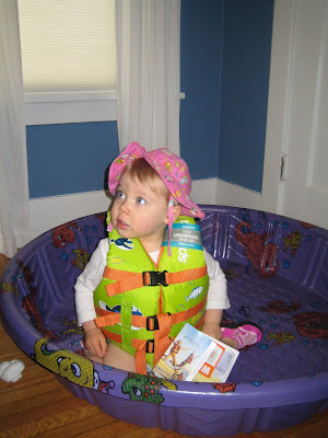 Maya liked to stand up in the pool and walk around (circle time to Maya). When she stood and we asked if she was ready to get out, she just smiled, sat back down and then stood up a second later. (We think this will be a funny game to her).